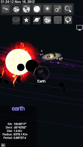 El mapa del cielo se dibuja con precesión en tiempo real. Puede girar libremente y en tiempo real en 360 grados a 60 cuadros por segundo. Luna y otros planetas se prestan en verdaderos objetos 3D con diferente nivel de detalles con el estado del arte de los efectos 3D para Android 2.2 y superior.